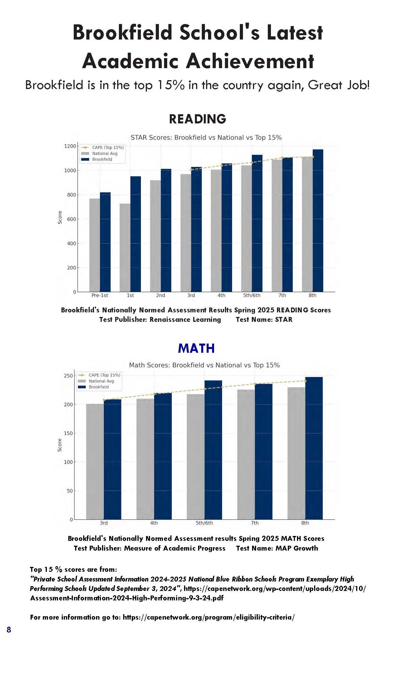 - Top 15% in the nation in math and reading
